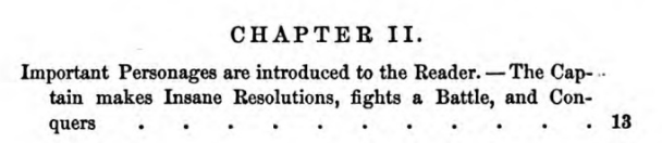 The table of contents is pretty fascinatingly close to Huckleberry Finn; the reviewers note the comparison, and it’s hard to imagine that the tale of a young boy’s adventures up and down the river with an entertaining ethnic (here Irish) sidekick past swindlers and exhibitions and perils wasn’t somehow noveled on the most famous humorist in the country.